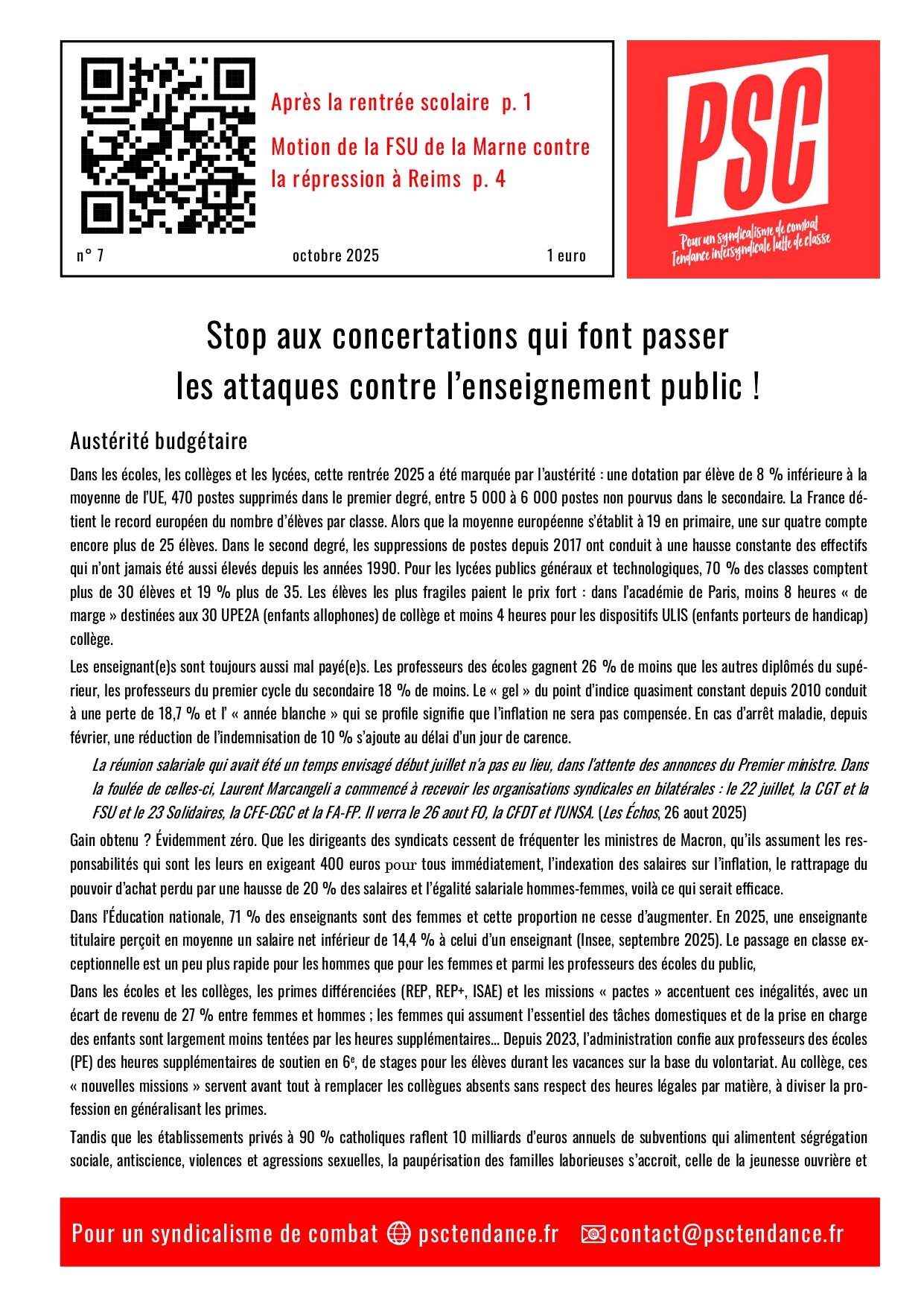 Motion de la FSU de la Marne contre la répression à Reims p.4