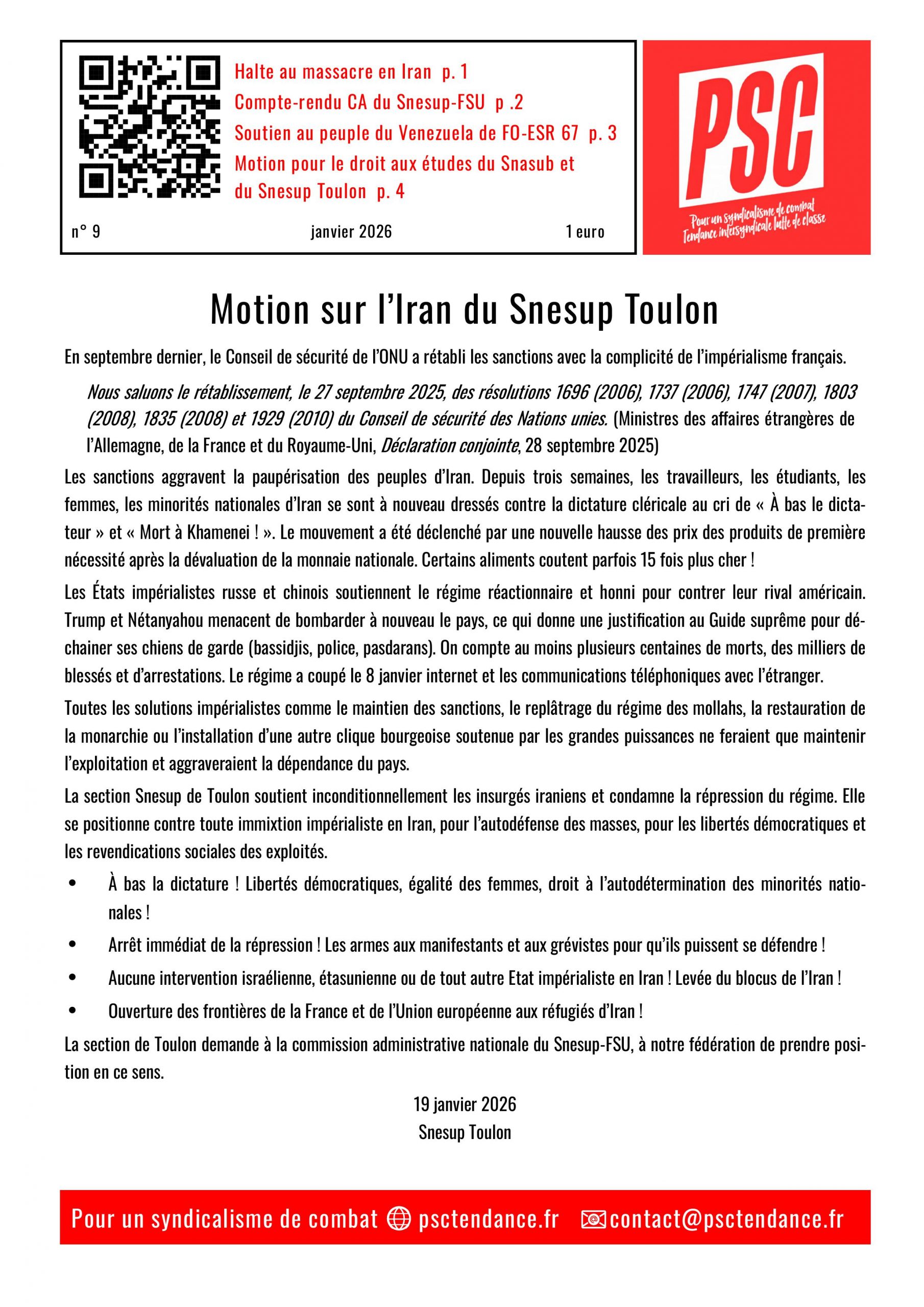 Pour un syndicalisme de combat n° 9